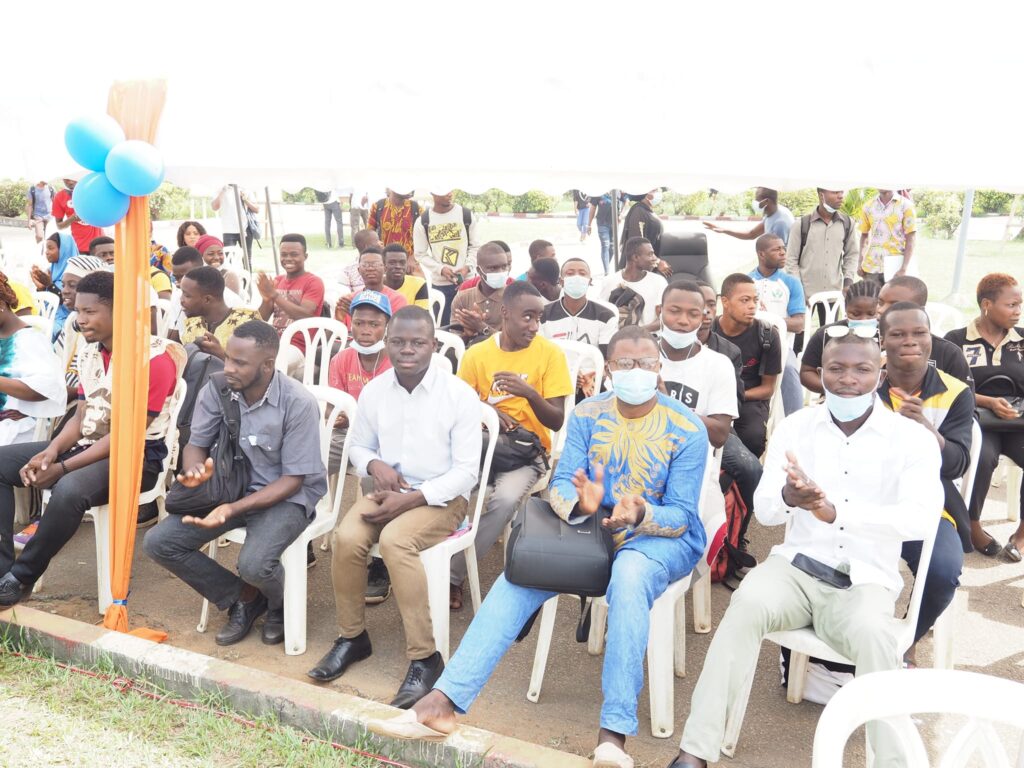Le Professeur Tano YAO, Président de l’UNA donne un jeu de maillot aux étudiants.
