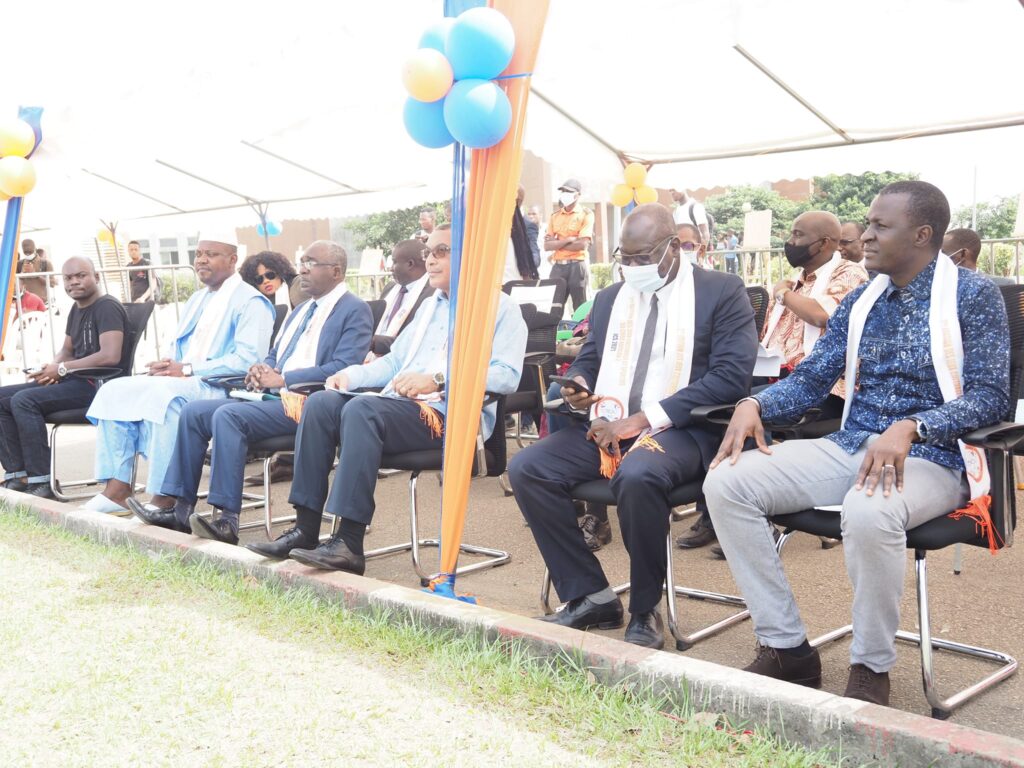 De la gauche vers la droite le Directeur du CROU A2 Dr. Bafétigué OUATTARA, le Directeur Générale de FILTISAC Monsieur Ibrahim Charles AMADOU et le Président de l’UNA Pr. Tano YAO.