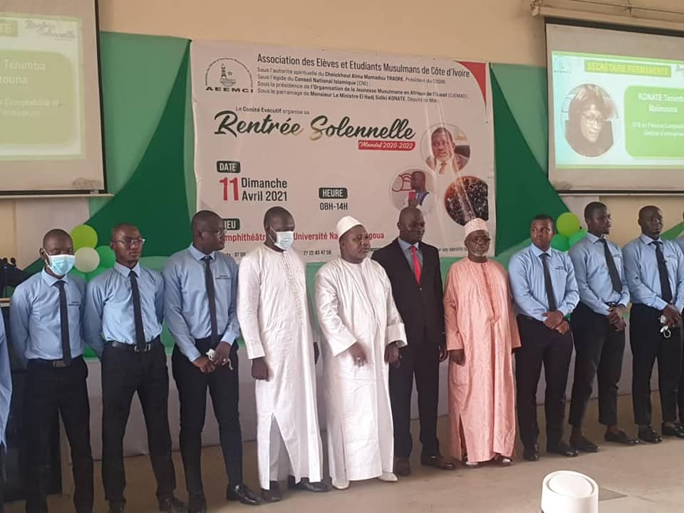 Le Directeur du Centre Régional des Œuvres Universitaires Abidjan 2, Dr. Bafétigué OUATTARA , a pris part à la rentrée solennelle de l’Association des Elèves et Etudiants Musulmans de Côte d’Ivoire (AEEMCI), ce dimanche 11 avril 2021 à l’Amphi A de l’Université Nangui Abrogoua (UNA). Au cours de cette cérémonie, parrainée par le ministre Sidiki KONATE, le bureau national et les organes centraux de l’AEEMCI ont été officiellement présentés. L’association dirigée par L’ Amir Brahima DEMLÉLÉ entend poursuivre ses initiatives notamment l’encadrement spirituel et social de ses membres pour leur épanouissement socioprofessionnel. Le mandat de ce bureau national qui a débuté en 2020 prendra fin en 2022.