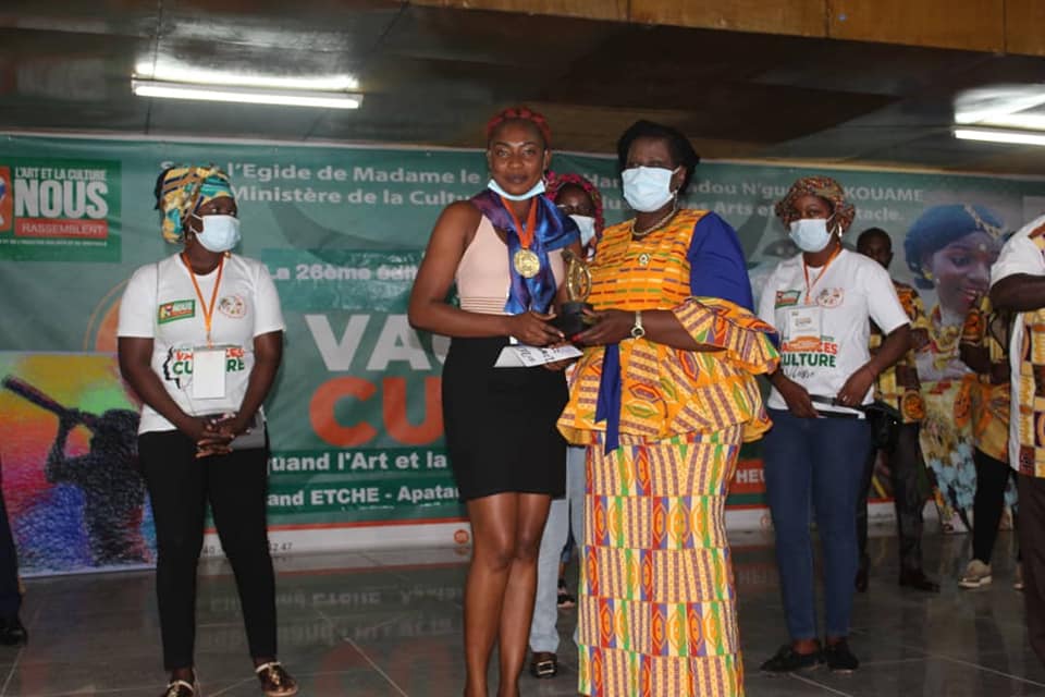 Le Club Culturel du CROU Abidjan 2 a remporté la première place dans la discipline Orchestre traditionnel face à huit grands groupes venus de diverses horizons, lors de la 26ème édition du Festival Vacances Culture à Aboisso. Le Directeur du CROU Abidjan 2 qui était aux côtés de ses étudiantes s’est réjoui de cette victoire. Il a traduit toutes ses félicitations aux jeunes talentueuses. Le Festival National des Vacances culture s’est tenu du 24 au 28 août 2021 dans la région du Sud-Comoé à Aboisso, autour du thème  » « Jeunesse, quand l’art et la culture nous rassemblent ! « Cette 26 ème édition a enregistré la participation de 32 régions qui étaient en compétition dans huit disciplines. L’objectif principal de ce Festival National est de valoriser le potentiel Culturel et artistique des jeunes. Félicitations à nos festivaliers !